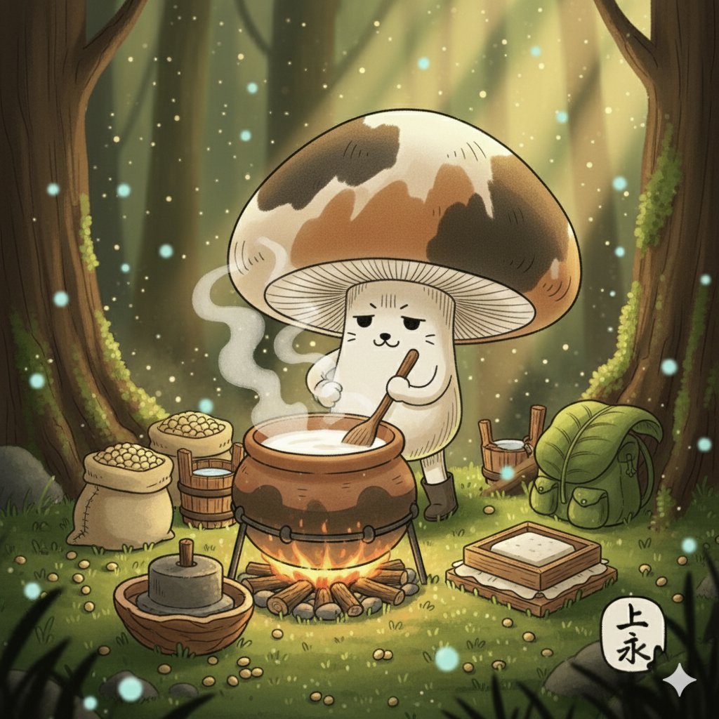 森に帰ってから、早速豆腐作りに取り掛かります。うさぎさんに教わった通り、水につけ、すり潰し、布でこして、豆乳を火にかけ、焦げないように木のヘラでゆっくりとかき混ぜる。森中に大豆の甘い香りが立ち込めます。