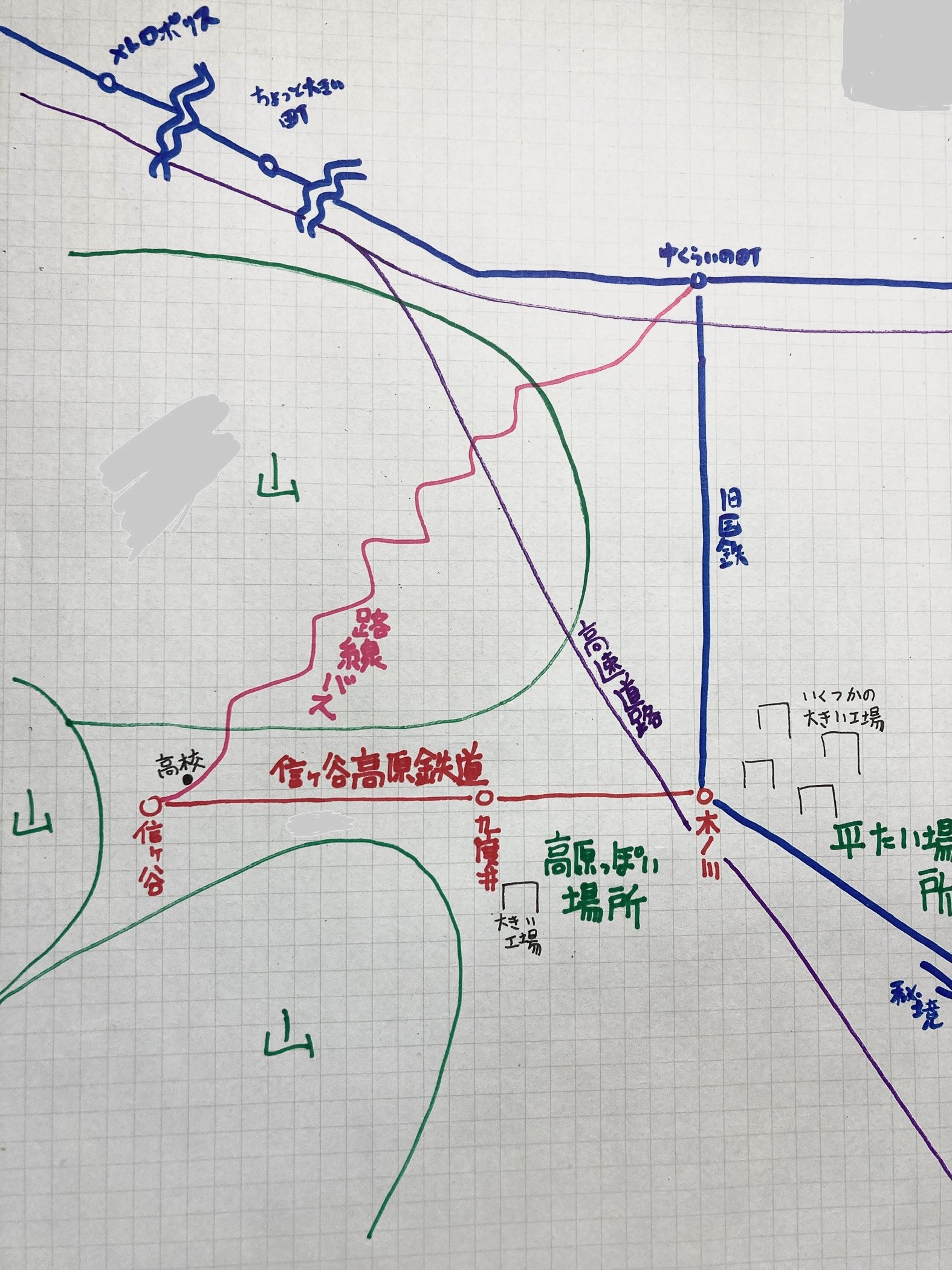 →路線バスです。信ヶ谷から中くらいの町を45分くらいで結びます。信ヶ谷高校の生徒もかなりの数がこの路線バスを利用しています。