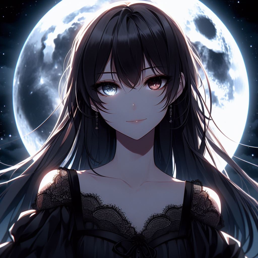 中性的な顔立ちに月と同じ瞳。実を言えばオールバックの前髪に挑戦したのですが、中々生成出来なかったため断念。
