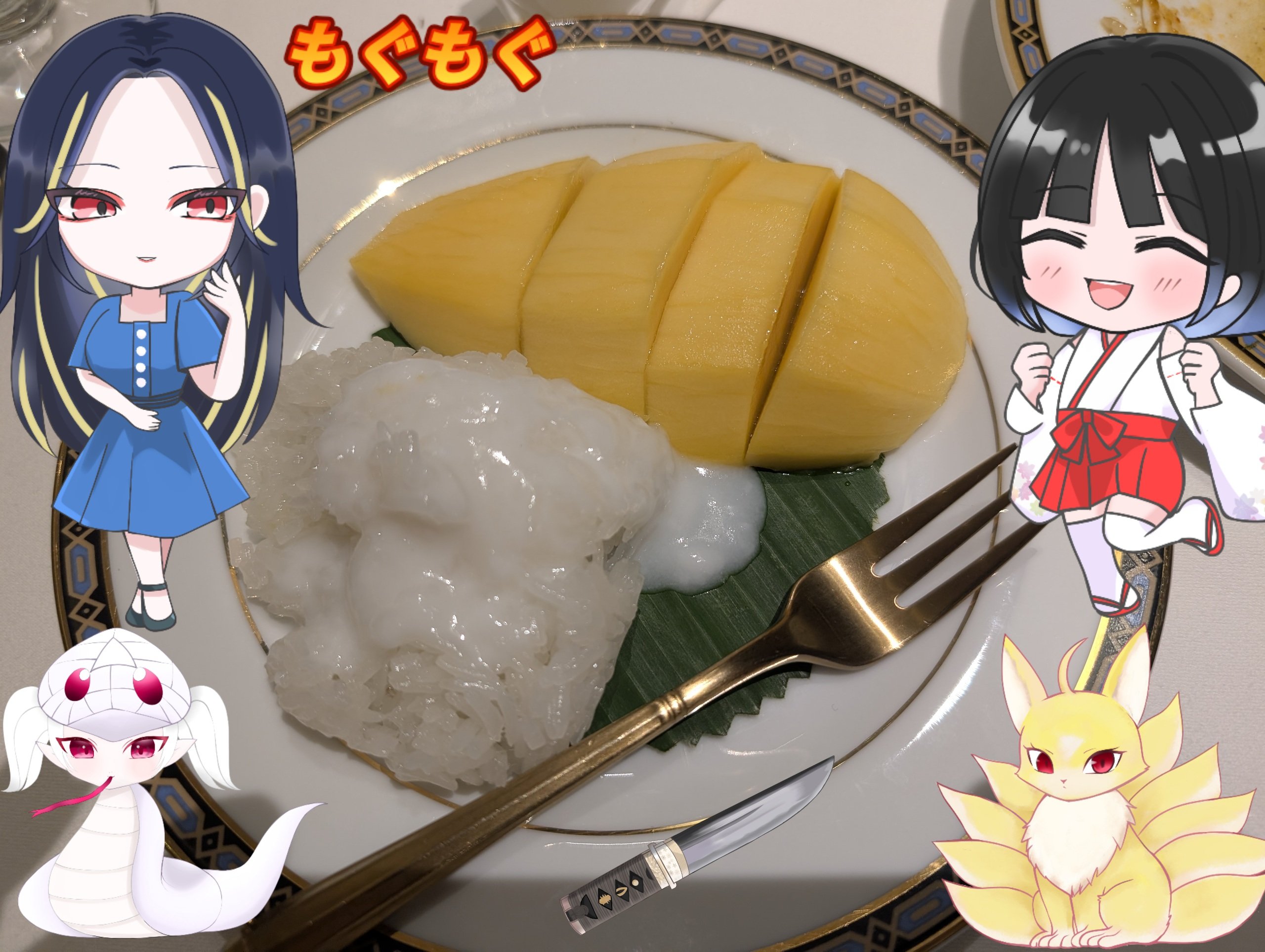 マンゴーとココナッツミルクたっぷりのもち米のデザートになります。おしゃれでトゥでもおいしいです