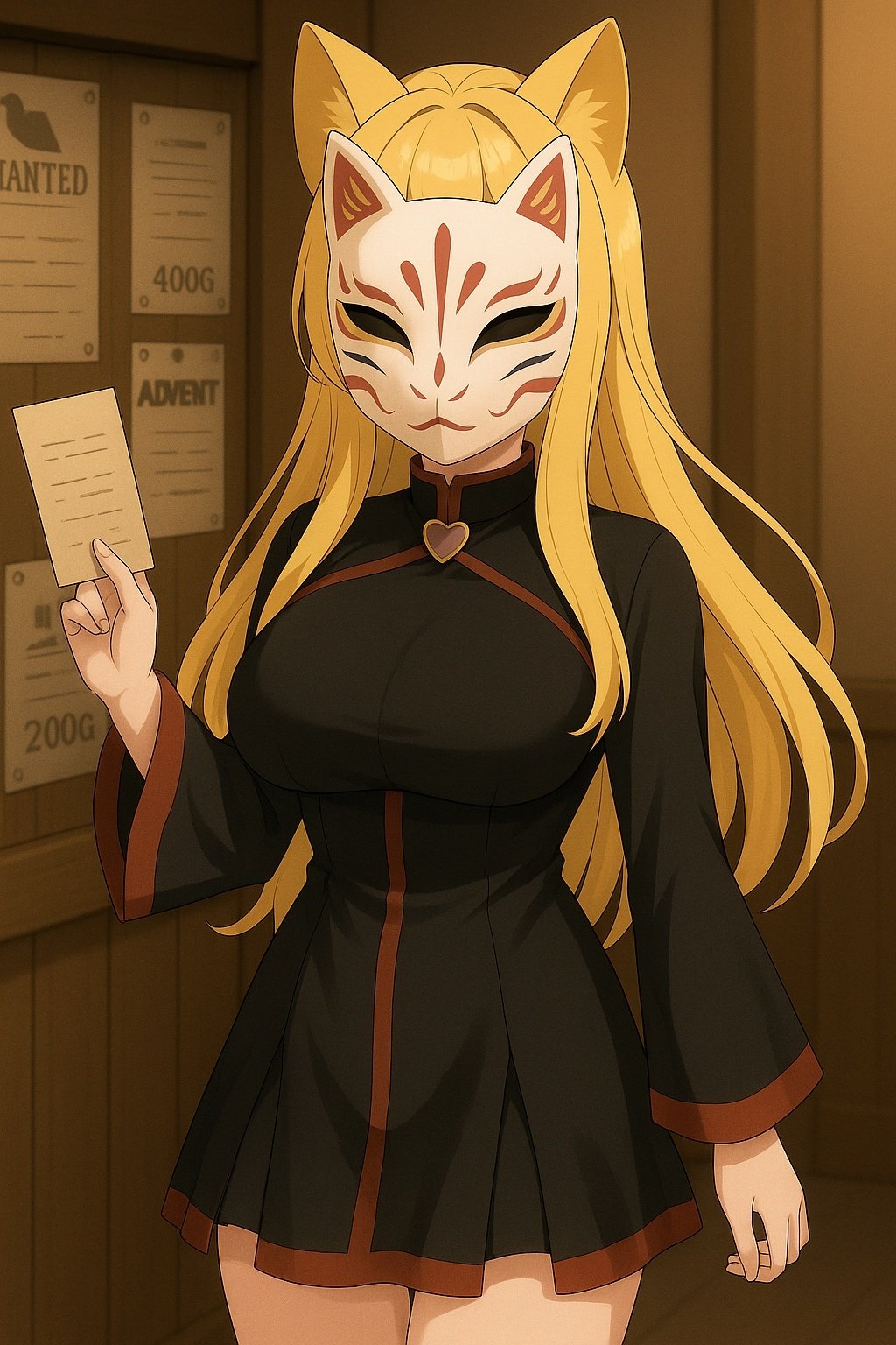 金髪で、仮面をつけた女獣人は無言のまま、壁に貼られた依頼掲示板を見渡す。