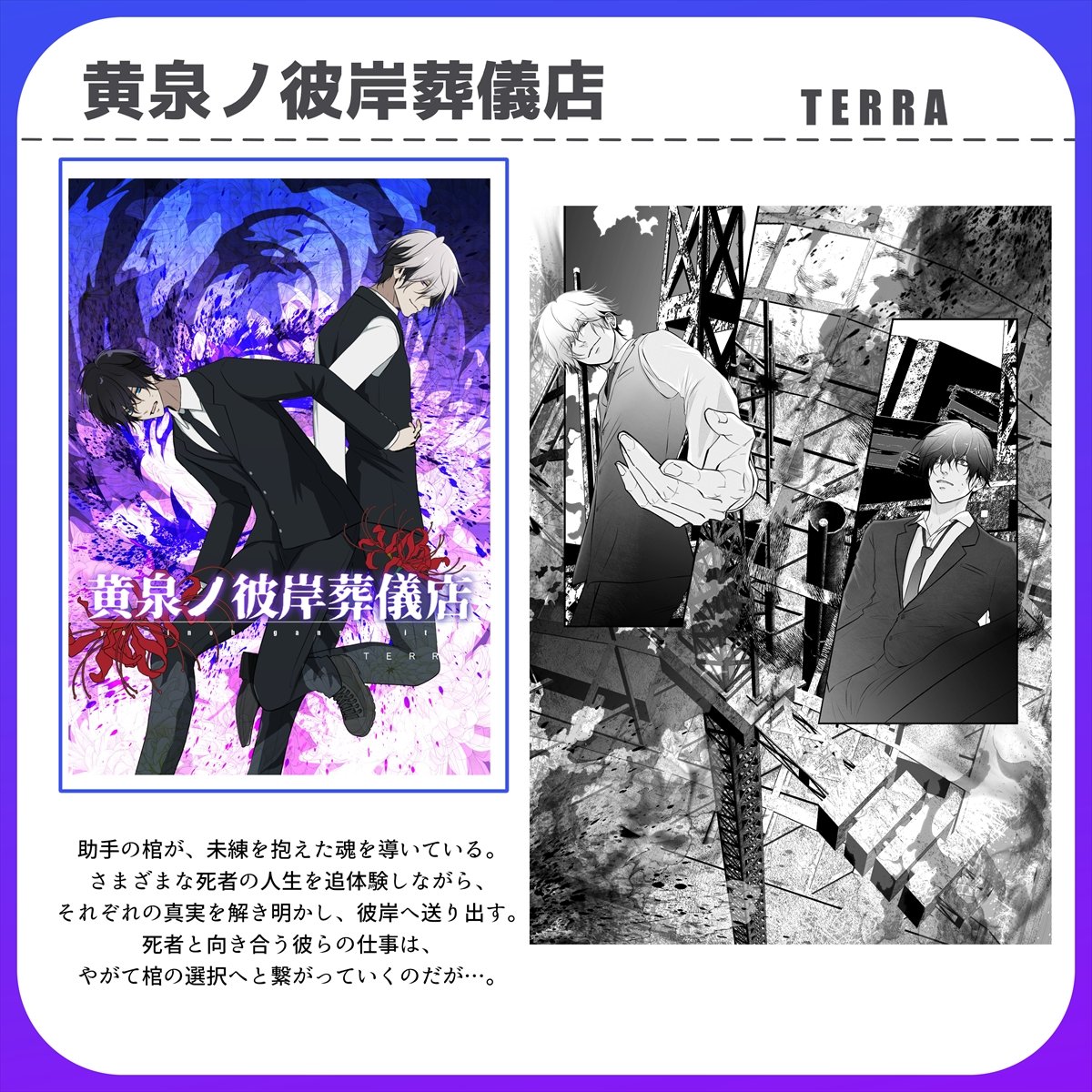 投稿中の作品、黄泉ノ彼岸葬儀店の表紙イラストと挿絵です。