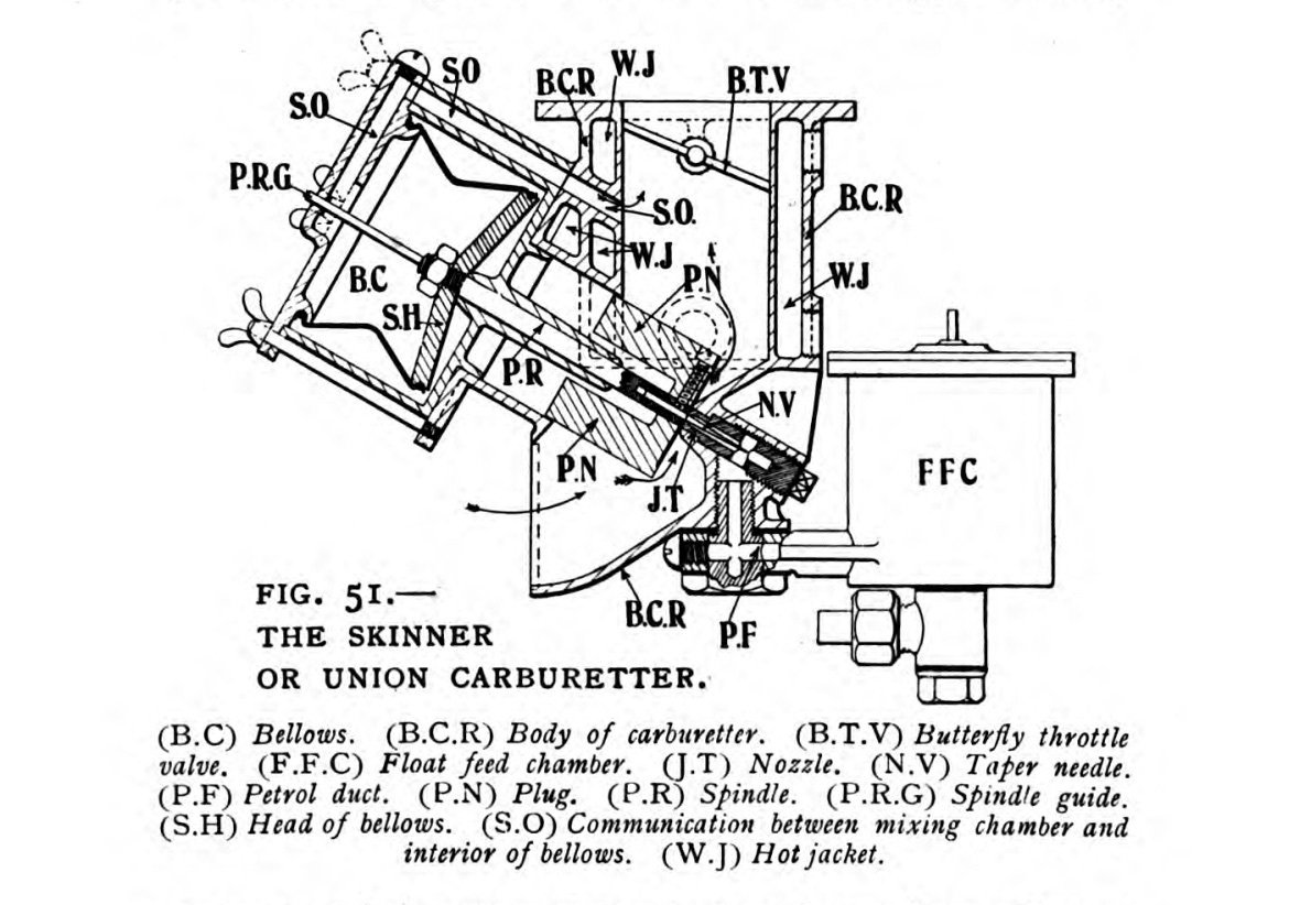 添付図は1908年式のスキナー社の「ユニオン」キャブレター。