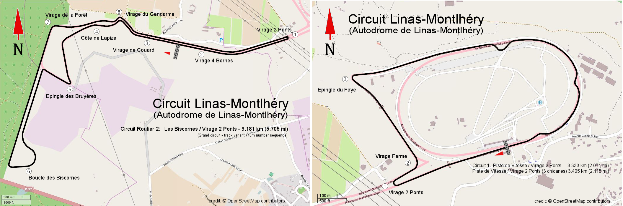 オープンストリートマップから、作中でのモンレリー・サーキットを部分的に借りたケースを紹介します。