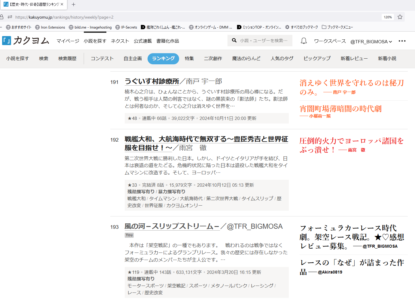週間ランキングにランクインしました。