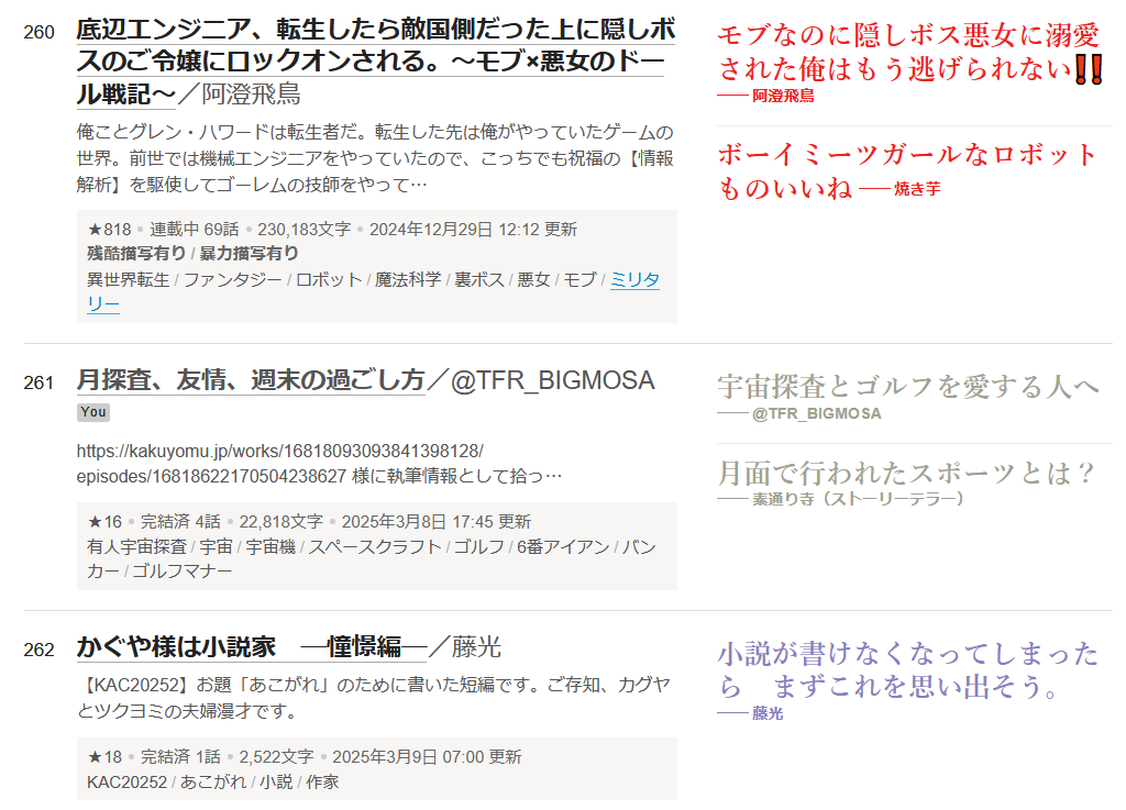 スクショの都合で紹介できる作品数が少ないのが残念です。