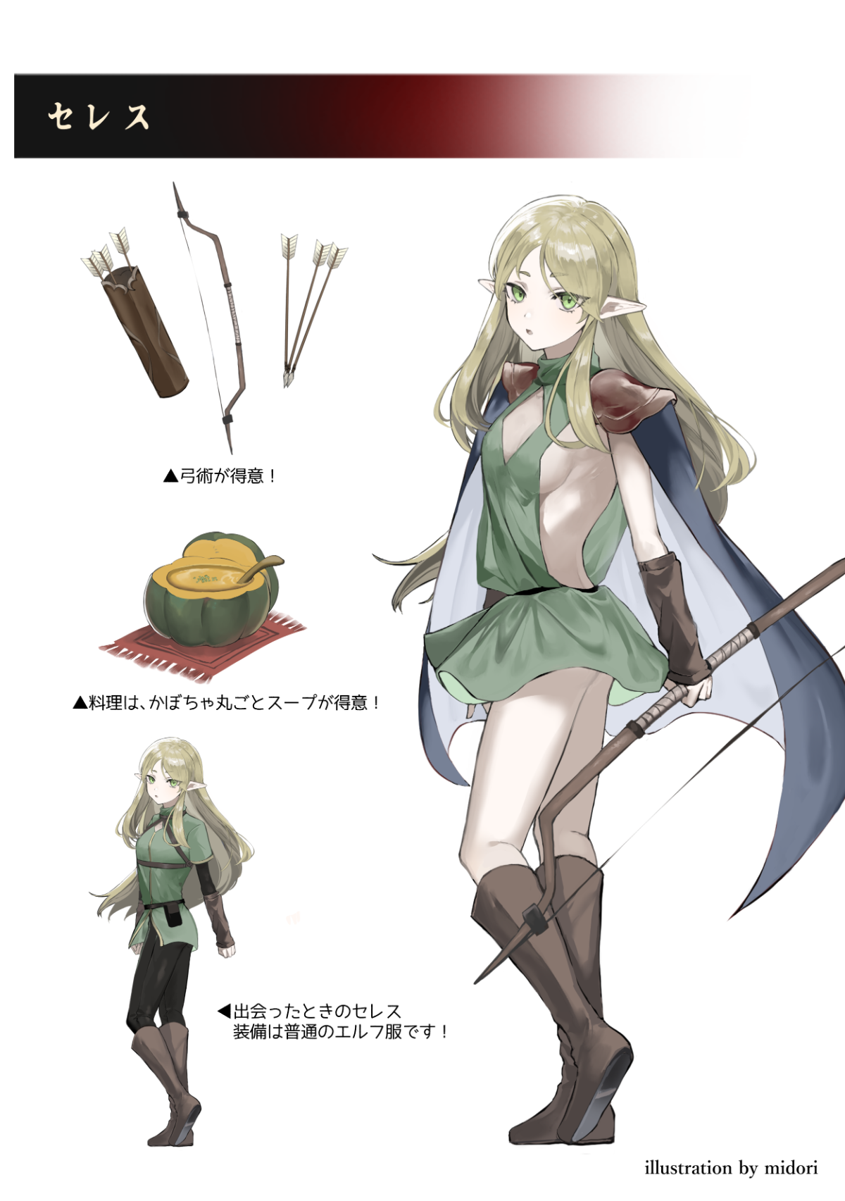 弓の腕前は天下一品で、自然神を信仰する司祭でもあります。