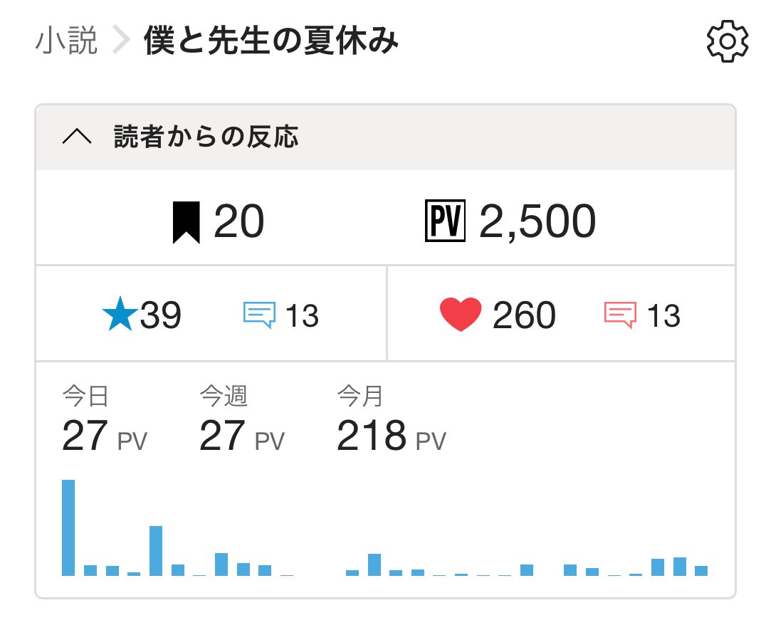 掲題の通り、「僕と先生の夏休み」のPVが2500を突破いたしました。
