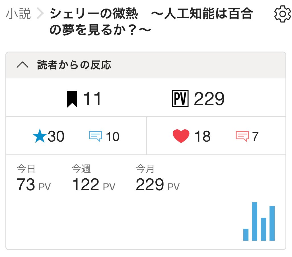 【感謝】「シェリーの微熱 〜人工知能は百合の夢を見るか?〜」200PV突破!