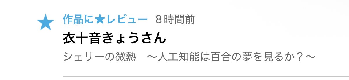 拙作「シェリーの微熱 〜人工知能は百合の夢を見るか?〜」にレビュー(⭐︎)を頂きました!