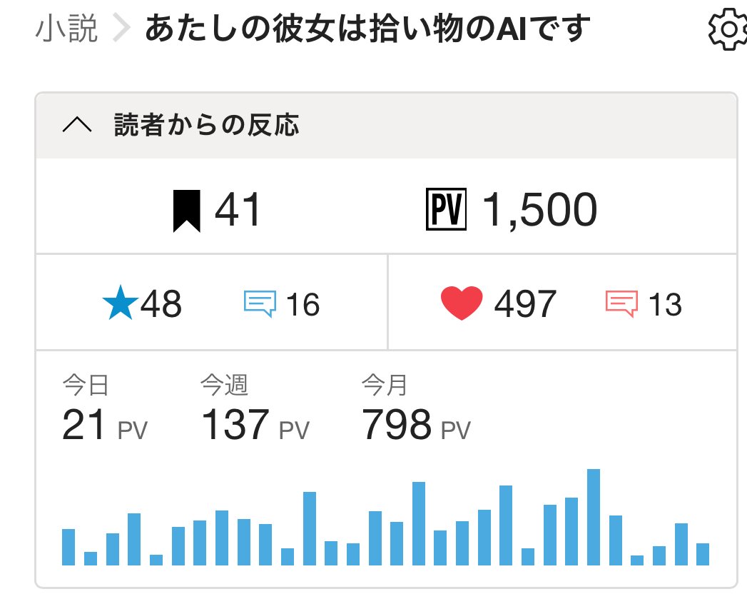 掲題の通り、「あたしの彼女は拾い物のAIです」のPVが1500を突破いたしました。