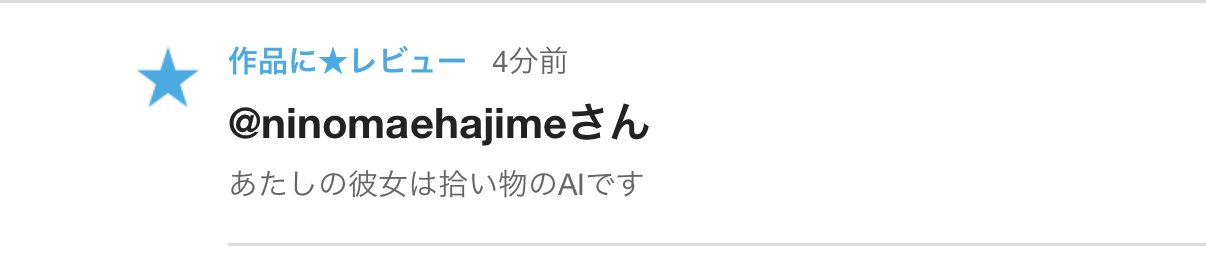 拙作「あたしの彼女は拾い物のAIです」にレビュー(⭐︎)を頂きました!