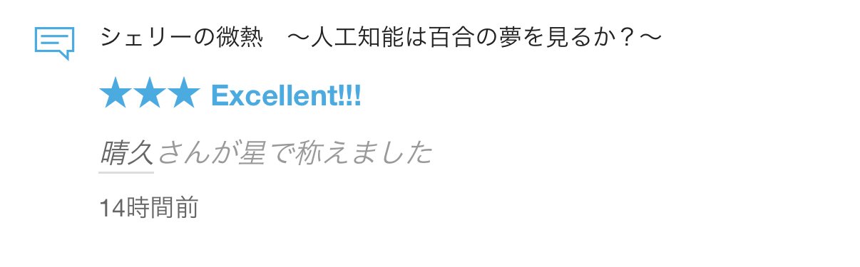 【シェリーの微熱 〜人工知能は百合の夢を見るか?〜】レビュー(★)をいただきました
