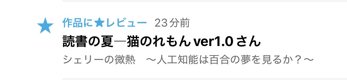 拙作「シェリーの微熱 〜人工知能は百合の夢を見るか?〜」にレビュー(★)を頂きました!