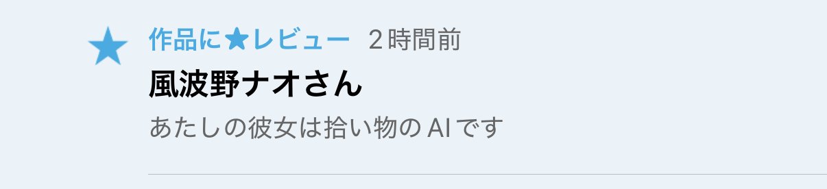 拙作「あたしの彼女は拾い物のAIです」にレビュー(⭐︎)を頂きました!