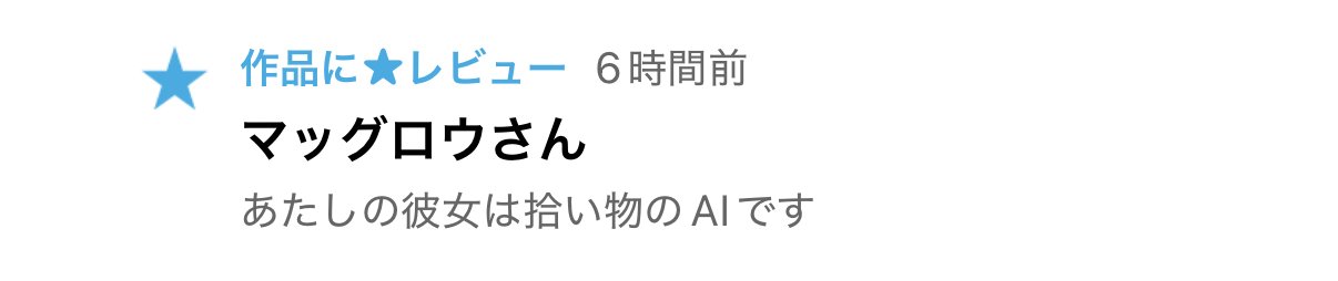 拙作「あたしの彼女は拾い物のAIです」にレビュー(★)を頂きました!