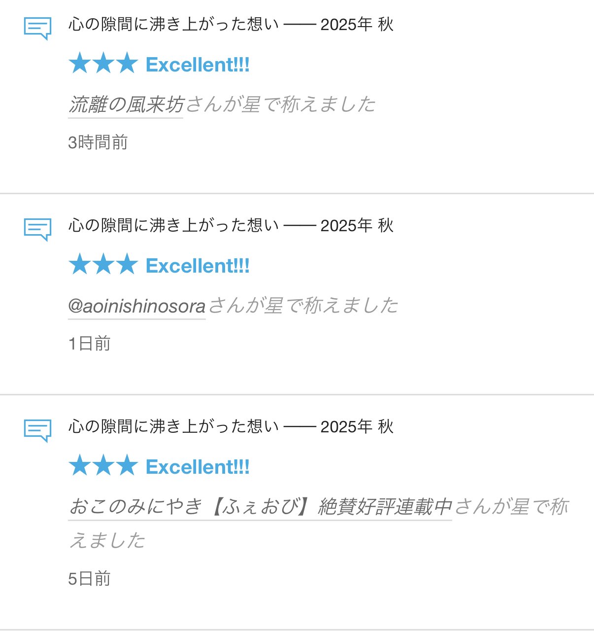 【心の隙間に沸き上がった想い ── 2025年 秋】レビュー(★)をいただきまし