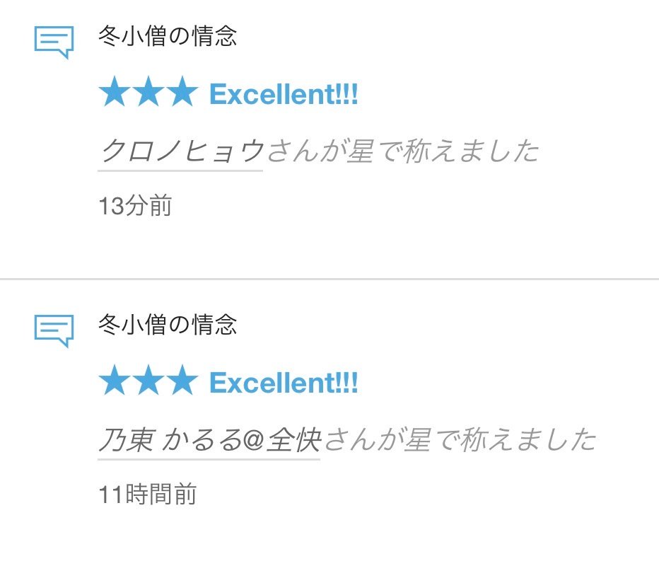 「冬小僧の情念」にレビュー(★)を頂きました