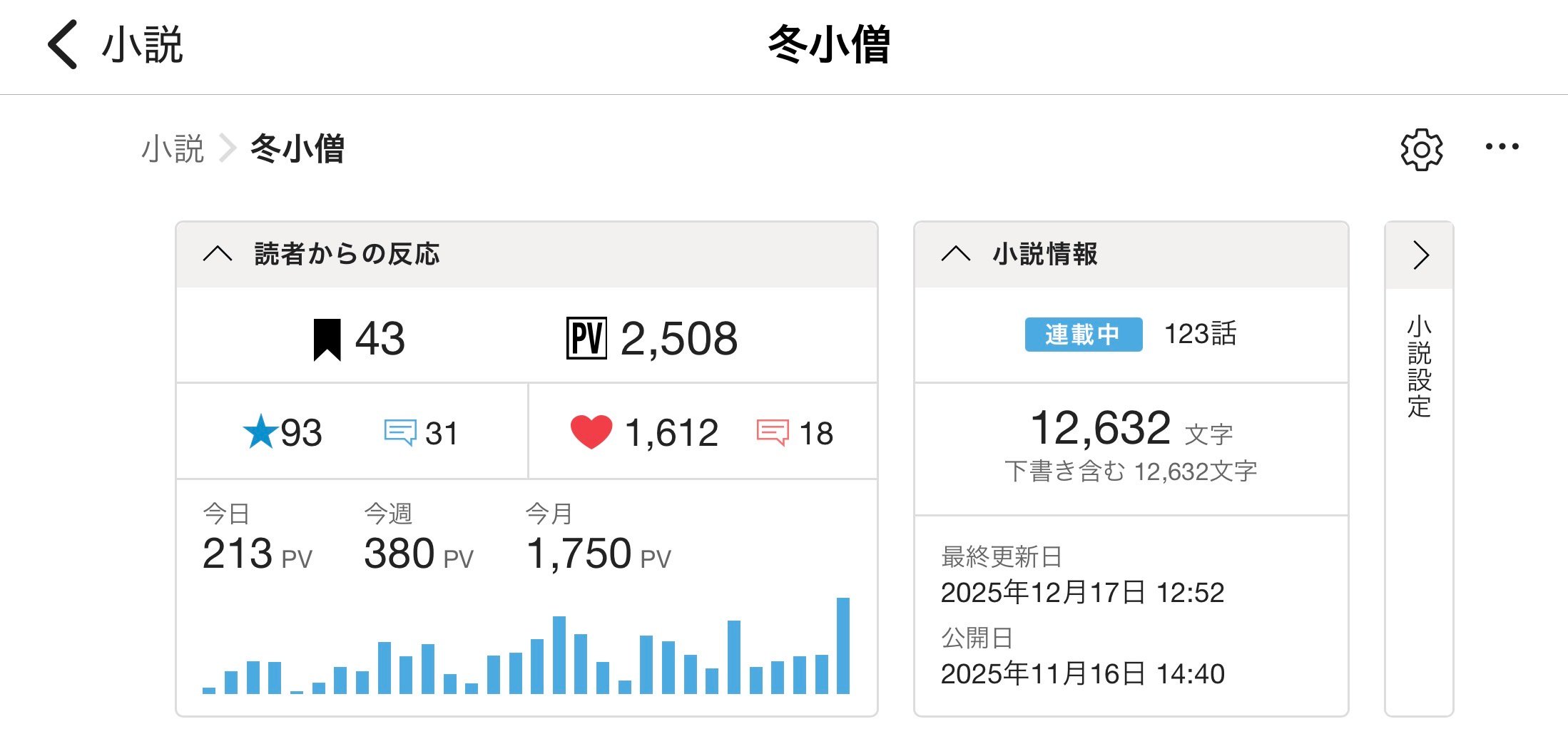 拙作「冬小僧」のPVが2500到達いたしました!!