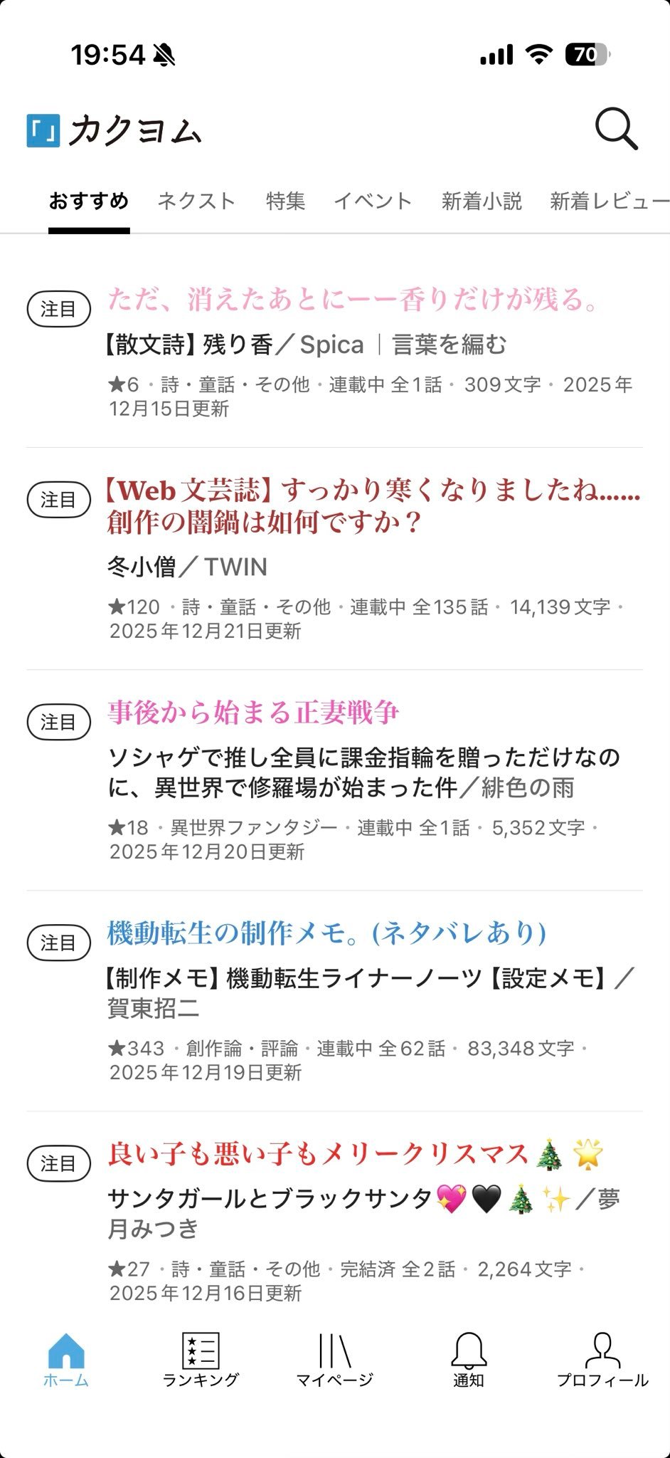 と思うなど。周りがこれだと、まぁ目に止まることはないですよね。画像はスマホで見たカクヨムのサイトトップなんですが、見事に目立ってないです。