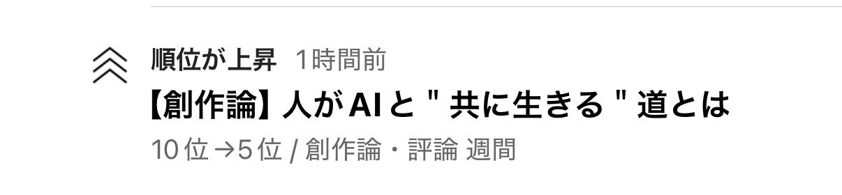 拙作「【創作論】人がAIと"共に生きる"道とは」のカクヨム週間ランクが上昇しました!
