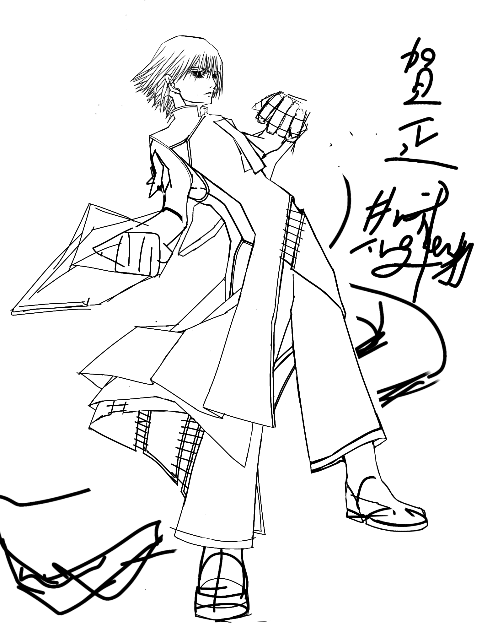絵は描き途中の年賀状〜。