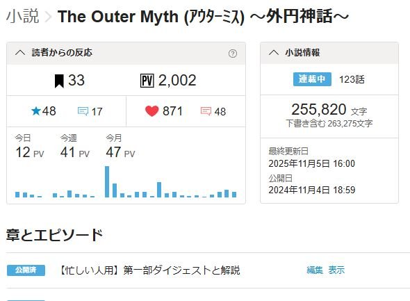 【2000PV感謝】アウターミス、カクヨム公開一周年で……