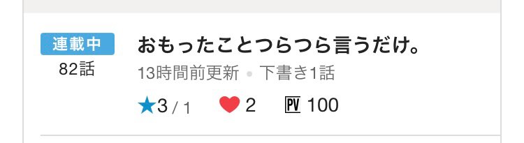 連載中の話がPV数を越えるまでやろうとか思ってたら、気づけば100PVを達成しておりました。