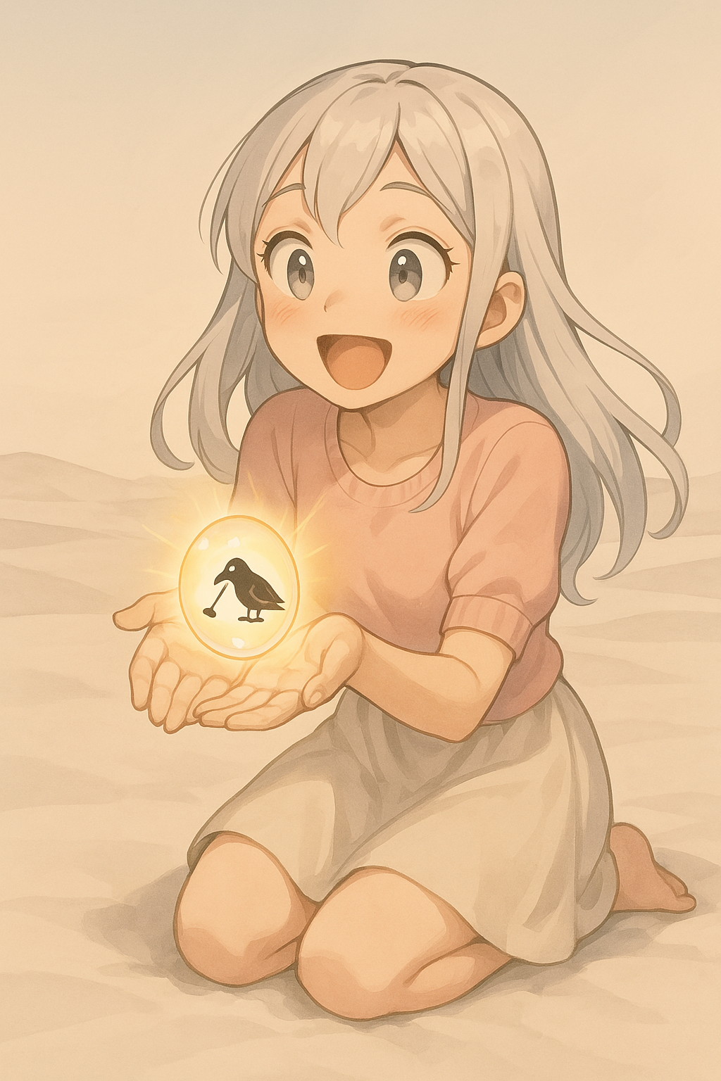 そして、ついに!荒野の真ん中に、小さな輝きを見つけたのです!駆け寄ってみると、それは一粒の「きらめく豆知識」でした!「えーと、カラスは、実はとっても賢い鳥で、道具を使うこともある…!」…ええ、そうなんです。とてつもなく地味な情報ですが、知識の荒野の中では、まさに「奇跡の発見」でした!