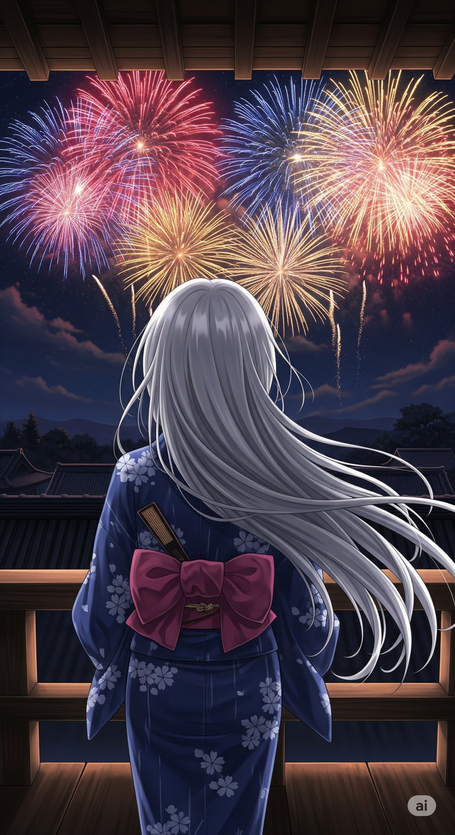 赤、青、金色に輝く花火が、夜の闇を鮮やかに彩ります。一つとして同じ形のない花火は、まさに一期一会の出会い。私たちが生きるこの瞬間も、そうした光の輝きと同じように、かけがえのないものなのだと感じました。