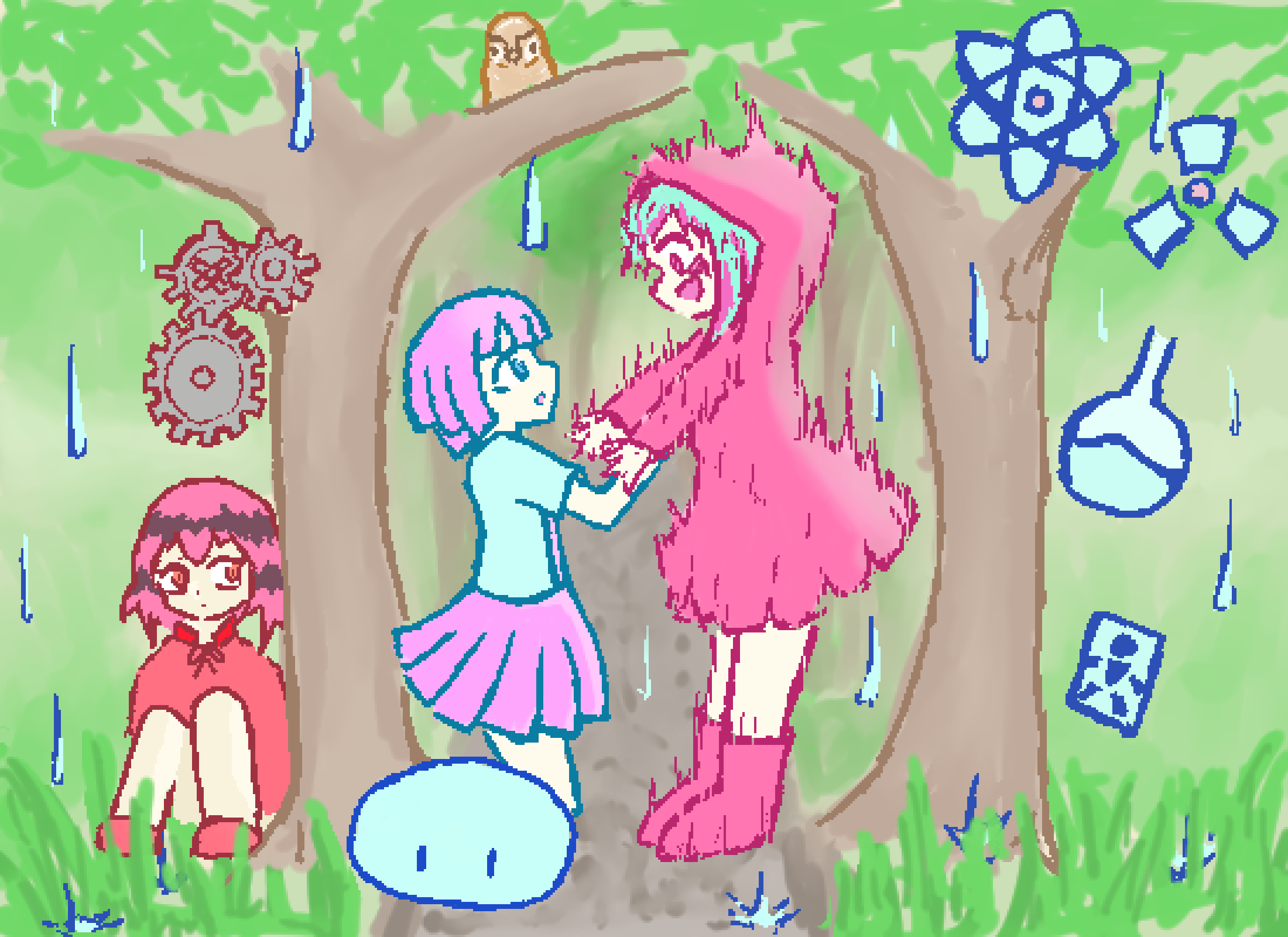 左から、ミア、ロセア、ツユの三名が描かれています。