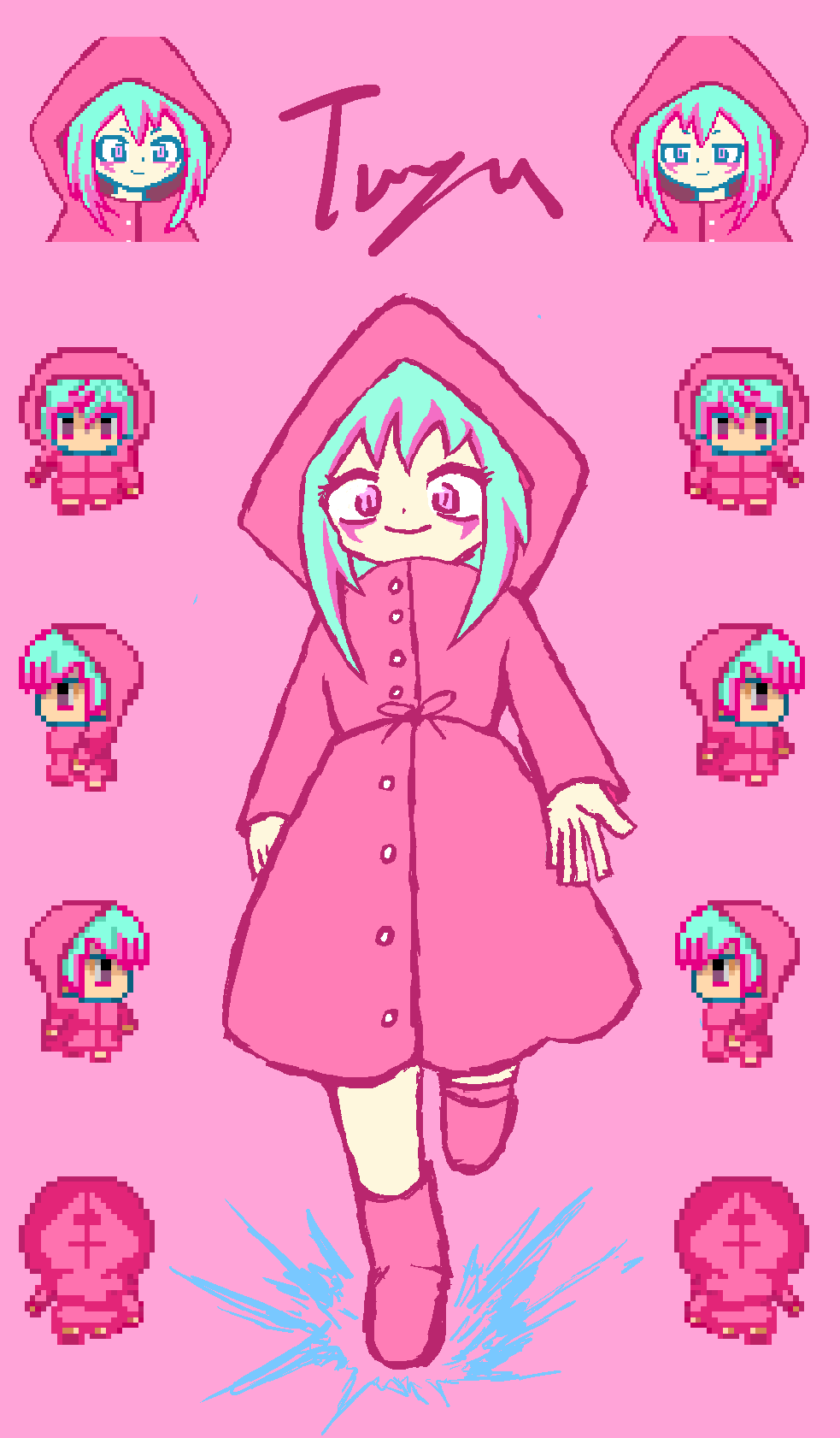 今回はツユです。ロセアとほとんど同じ時期にデザインを考えたキャラクターで、同じくかなりの愛着があります。