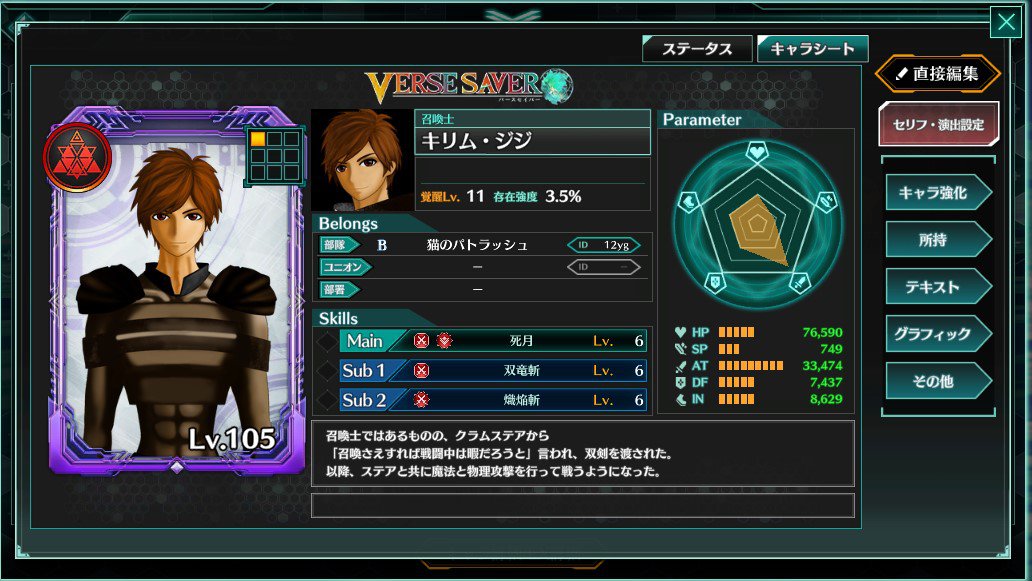「バースセイバー」というゲームで自キャラとして使っています(笑)