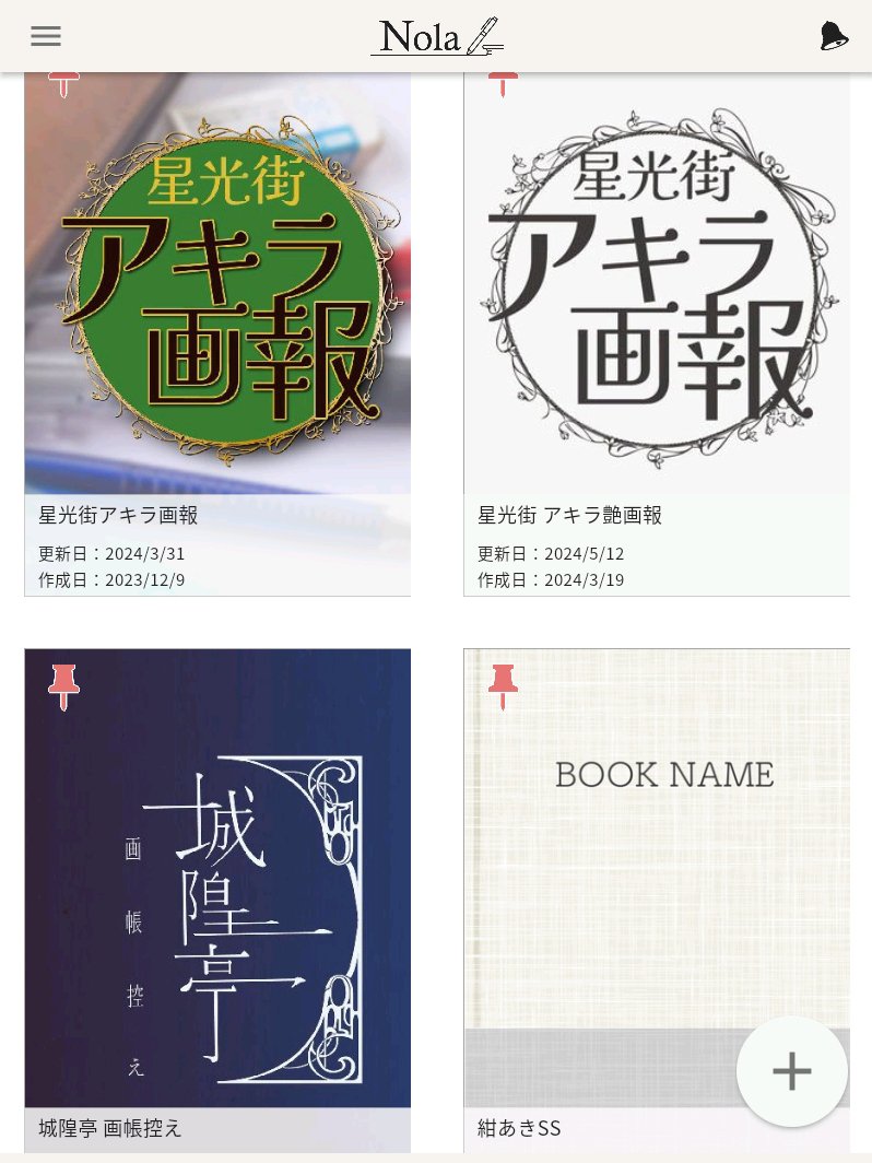 ↓は執筆に使ってるNolaアプリの表紙です。