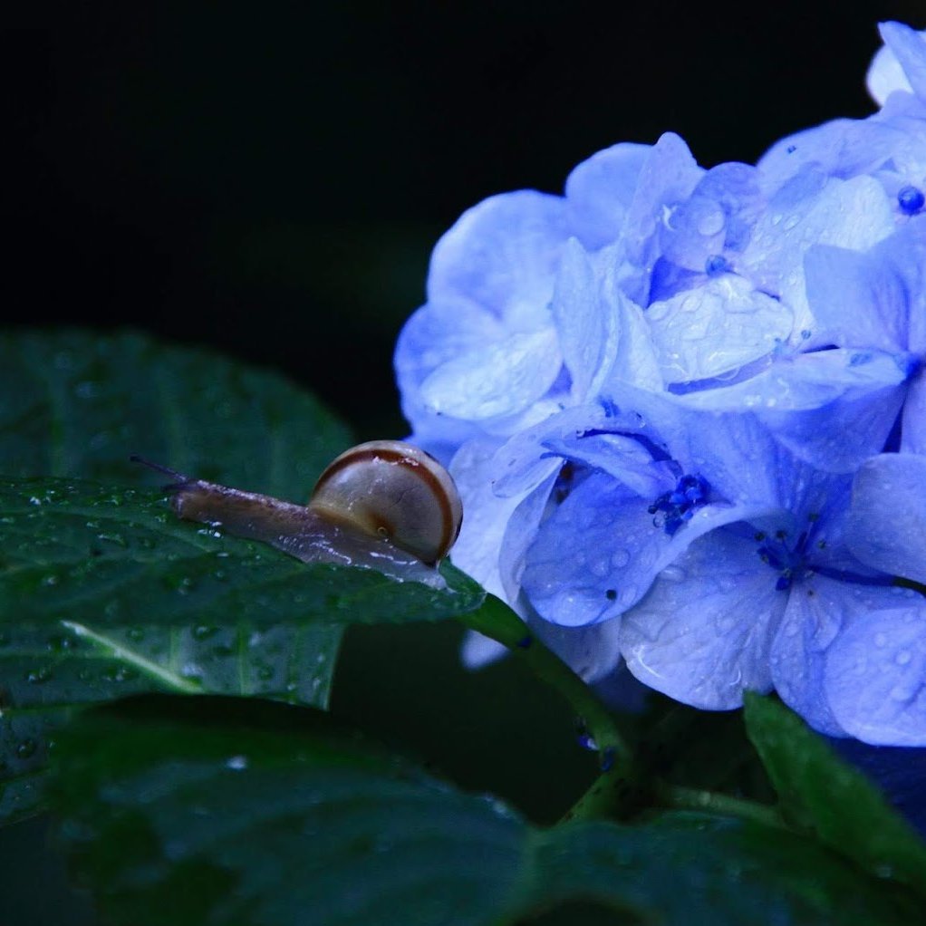 📸 写真は、紫陽花の葉を歩くカタツムリ。雨上がりの、しっとりとした一枚です。
