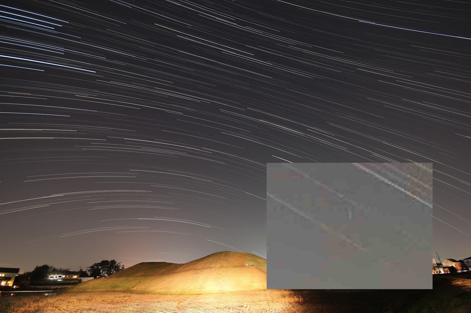 2016年、高崎市内の古墳と星空を撮影していた夜に現れた火球。