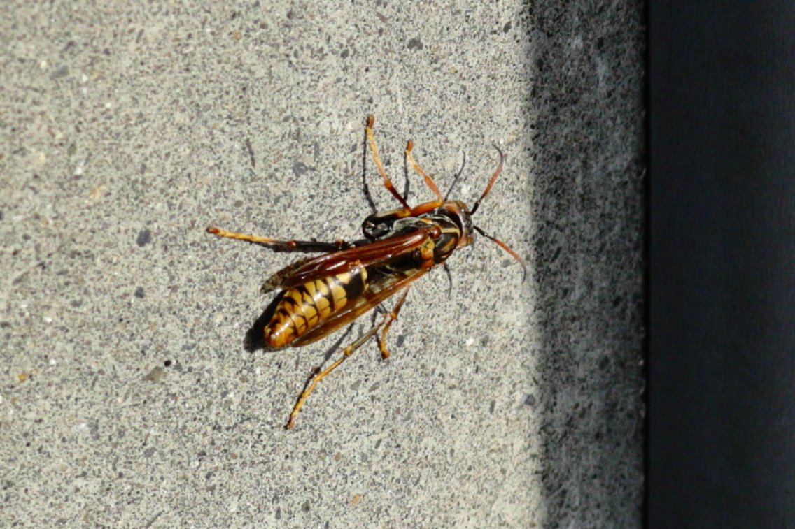小菊の咲く季節、あの時に見かけたセグロアシナガバチのオスは、いったい何をしていたのだろう。巣もなく、仲間もいないこの時期に、電柱にしがみついていた姿がどこか切なく感じられた。もしかしたら、最後の陽を浴びていただけなのかもしれない。そう思うと、あの時の写真を見返すたびに、少し胸が締めつけられる。