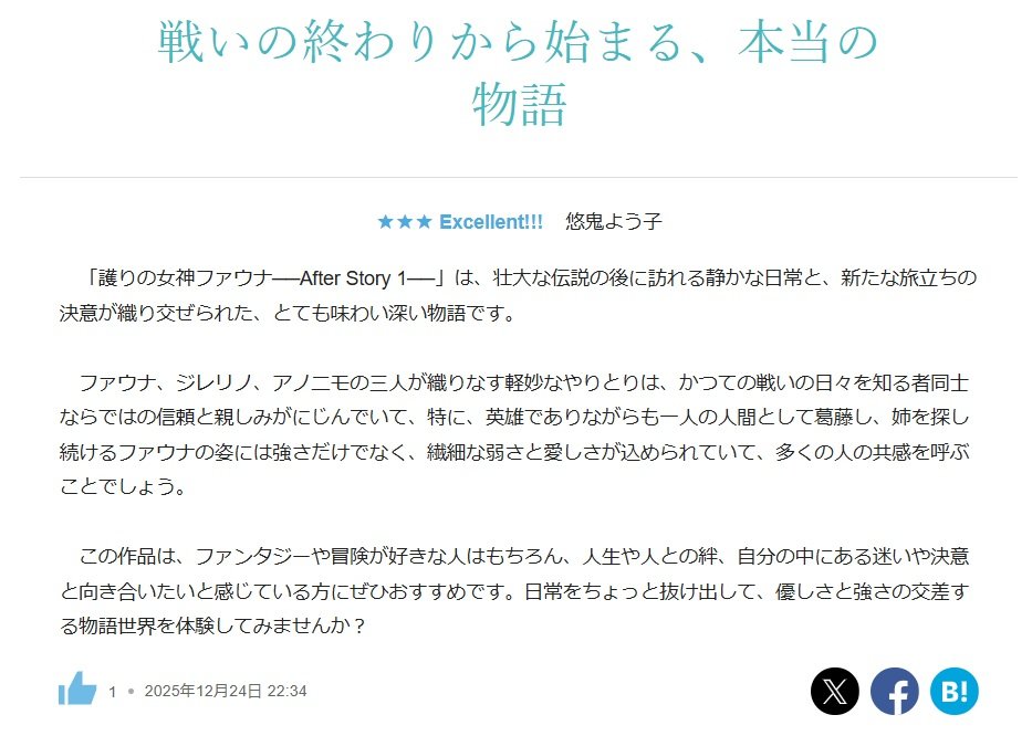 ファウナ AfterStory 1 『Last Episode 愛らしき華を紡ぐ』 レビューコメントいただきました
