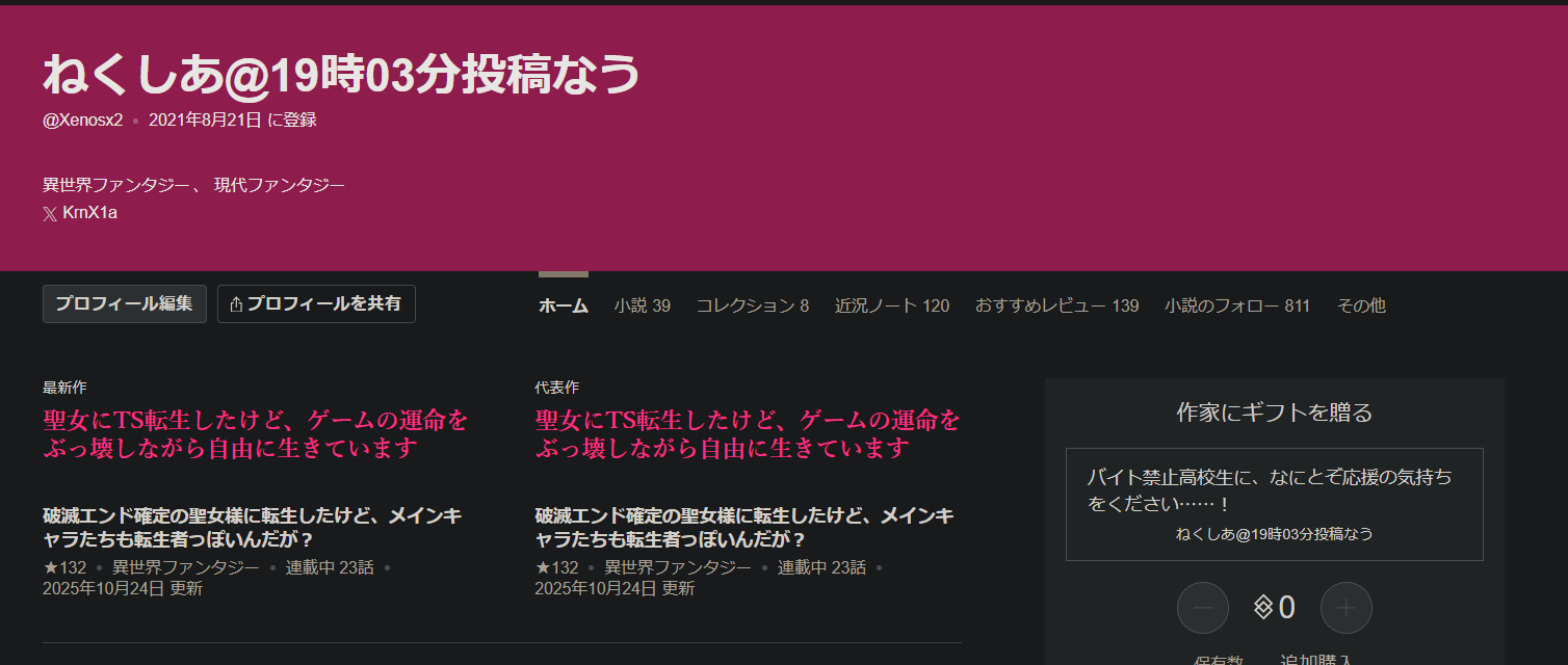 この「代表作」は、ユーザーが自由に設定できるんですが、デフォルトだと自動で設定されるようになっています。