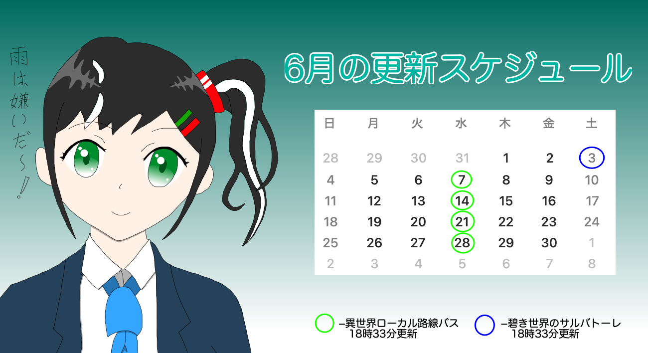 さてさて、6月の更新スケジュールですが。