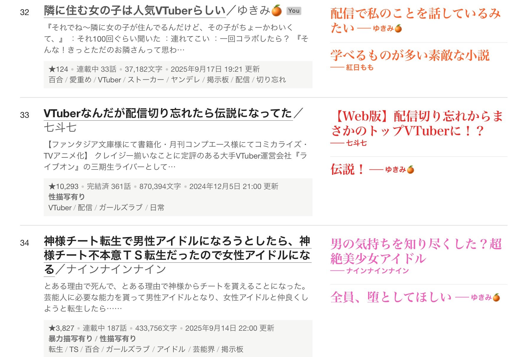 と、こんな感じでしょうか!! 思ったより百合作品書いてないですね‥‥‥100ぐらい書いてるかもとか思ってたんですけどっ