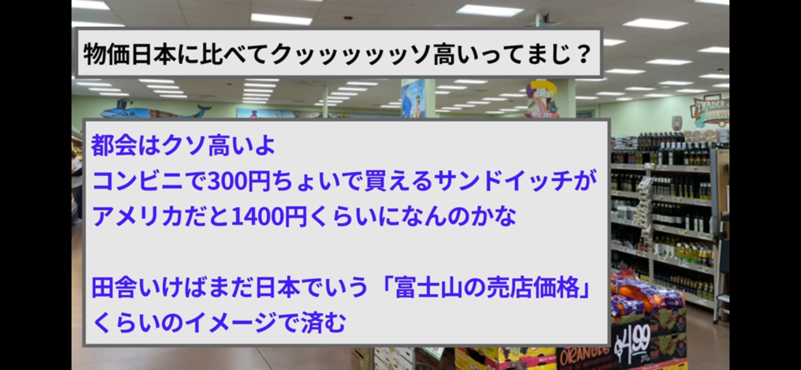 添付画像はyoutubeで2024年のアメリカの物価の高さを嘆いている画像ですね。