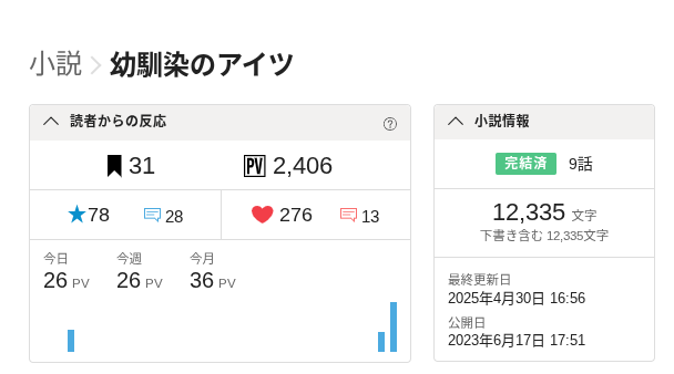 最近、幼馴染のアイツをまた読んで頂ける機会が増えてきたので私も改めて見てみたらなんかすごいことになってました。