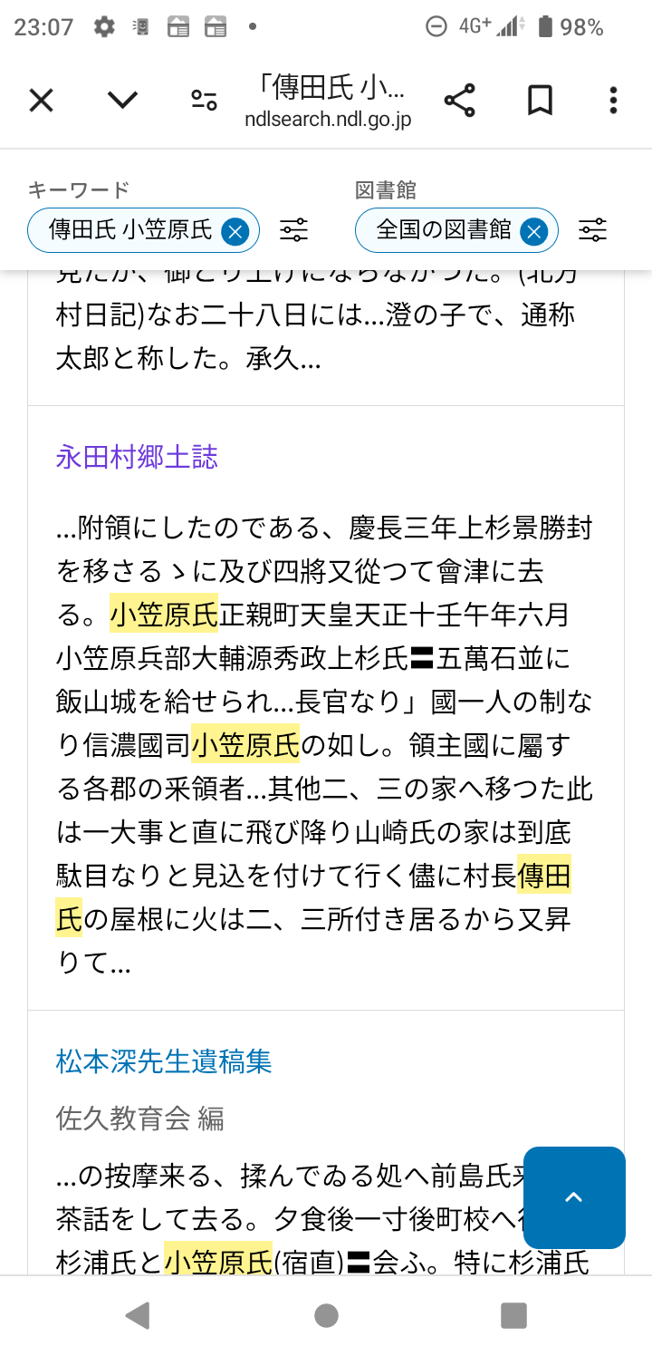 姻戚ではないものの傳田氏の中には、宮方ではなく足利幕府方の小笠原氏の下にいた人もいた記録。