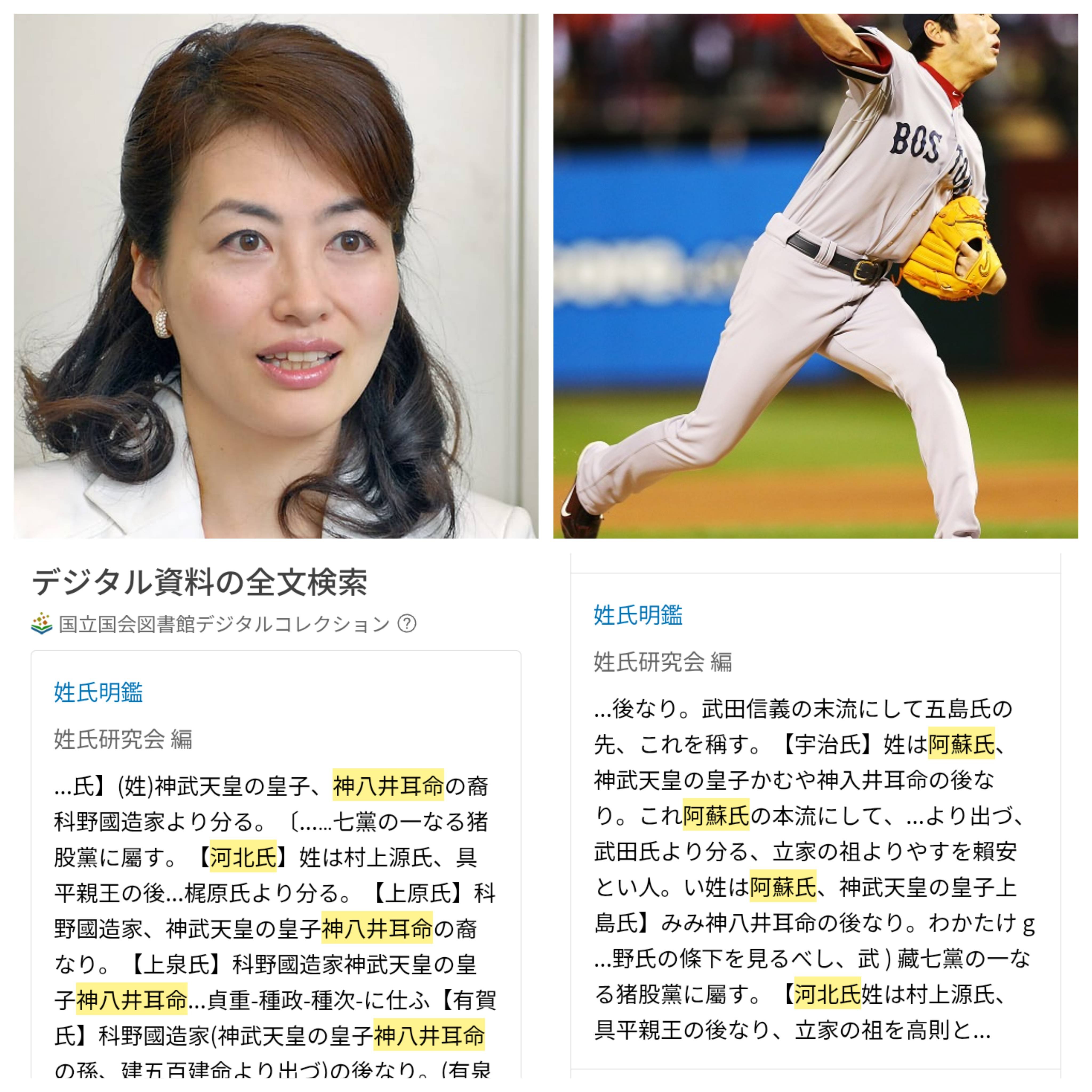 有賀さつきさんと巨人上原さんは神武天皇子孫