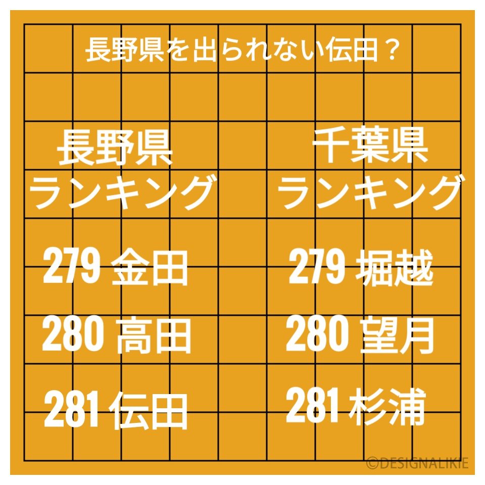 伝田氏は長野県名字ランキングで、中位にも関わらず、千葉県では下の下のほう。