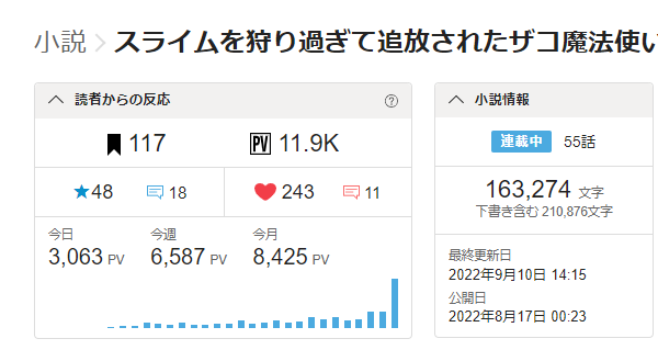 1日のPVが900台まで伸びて、喜んで昨日近況ノートに書いたのに、翌日いきなり3000台に乗った。