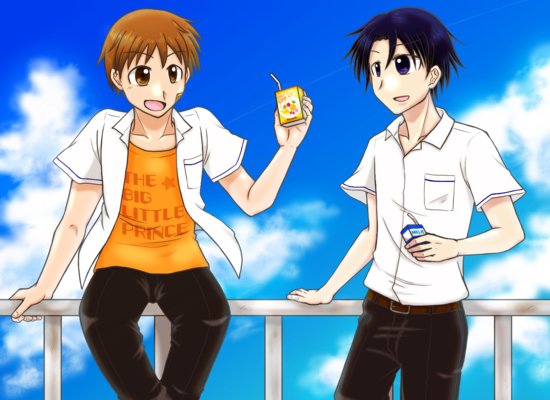 おまけ。カクヨムでは初公開の「田中君と山川君」イメージイラスト。左の茶髪が田中で、右の黒髪が山川です。