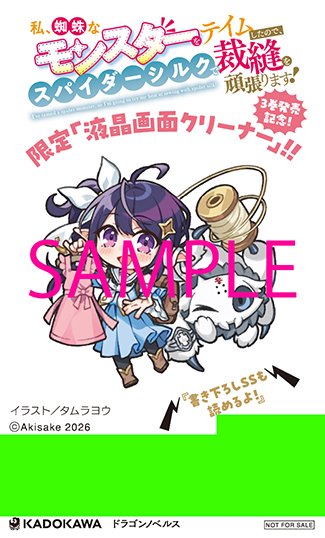 コミカライズ版『私、蜘蛛なモンスターをテイムしたので、スパイダーシルクで裁縫を頑張ります!2』2026年3月9日発売です!