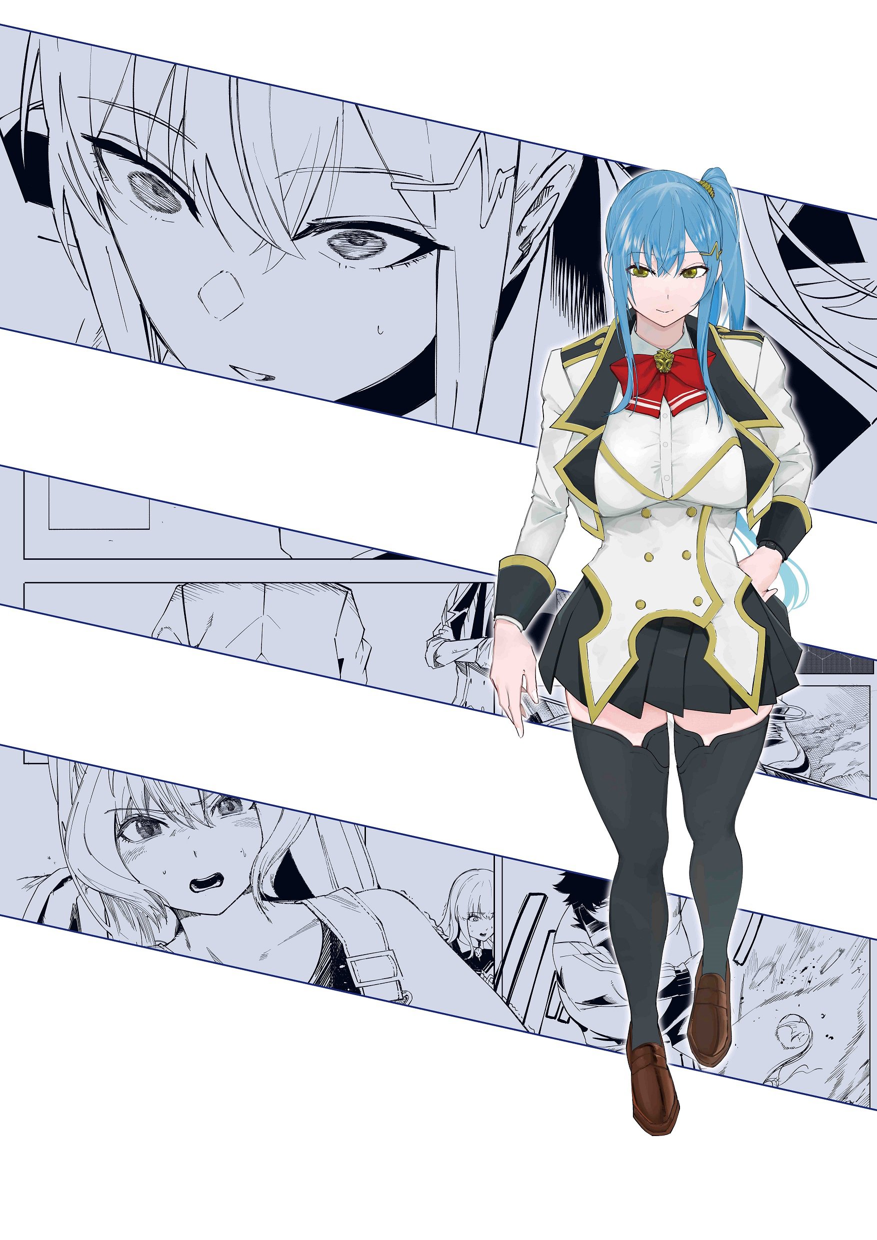 こちらは裏表紙となる予定のイラストです。 右側には笑みを浮かべるカヲルが描かれています。背後のモノクロのコマはこちらのほうが見やすいですね。繊細でありながらもコマの使い方、キャラクターの動き、臨場感がとても上手く表現されています。何よりもヒロイン達が可愛いのがいいですね。
